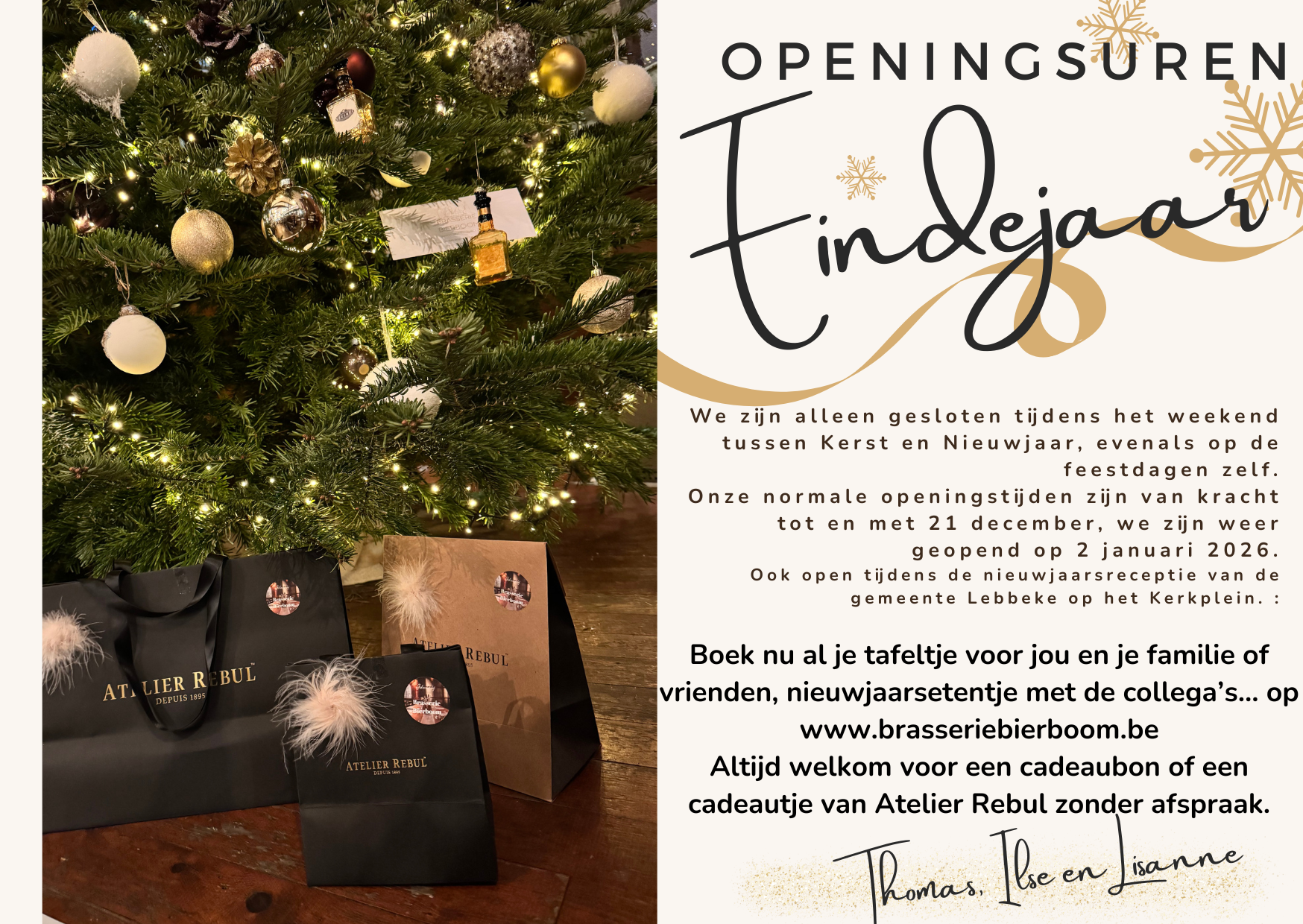 Gesloten van 24 dec tem 1 januari 2026. (tussen Kerst en nieuw houden we van familietijd)